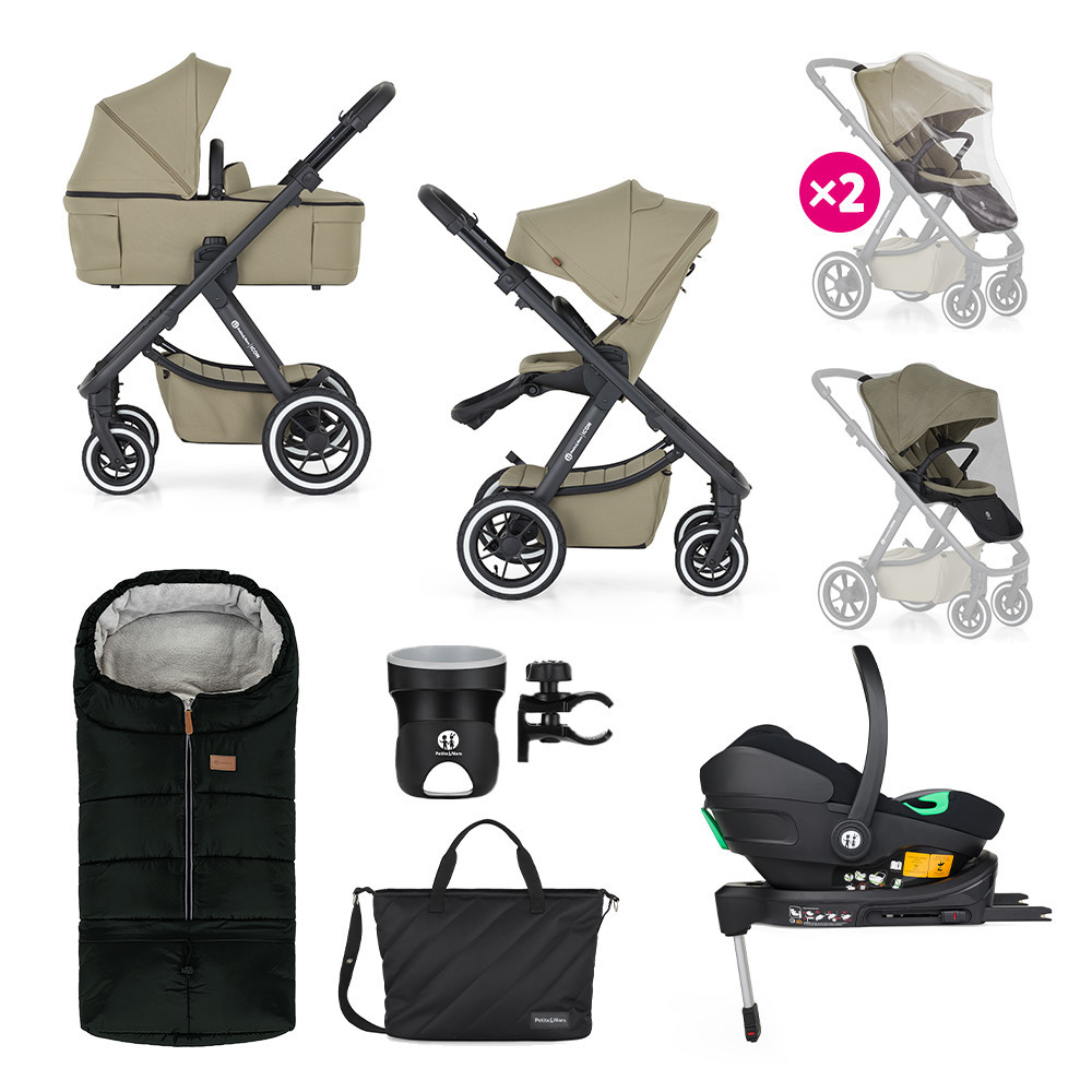 Petite&Mars Kombinált babakocsi ICON 2in1 Mossy Green XXL AIR + Core Pro i-Size Black Grey + Bázis