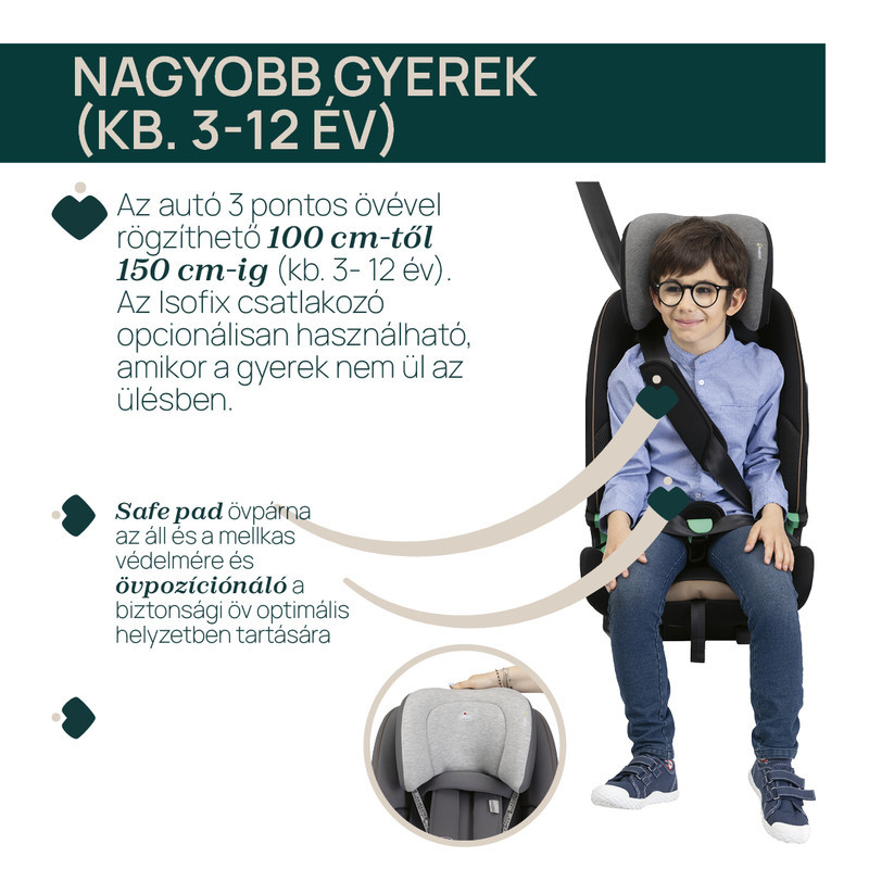Az 1–12 éves gyerekek számára készült Seat&Go autósülés tökéletes kombinációja a maximális védelemnek és a kényelemnek. IsoFix és Top Tether csatlakozás, 3 pozícióban dönthető ülés, 14 fokozatban állítható fejtámla és légáteresztő bambuszszálas huzat gondoskodik róla, hogy minden utazás biztonságos és kényelmes legyen.