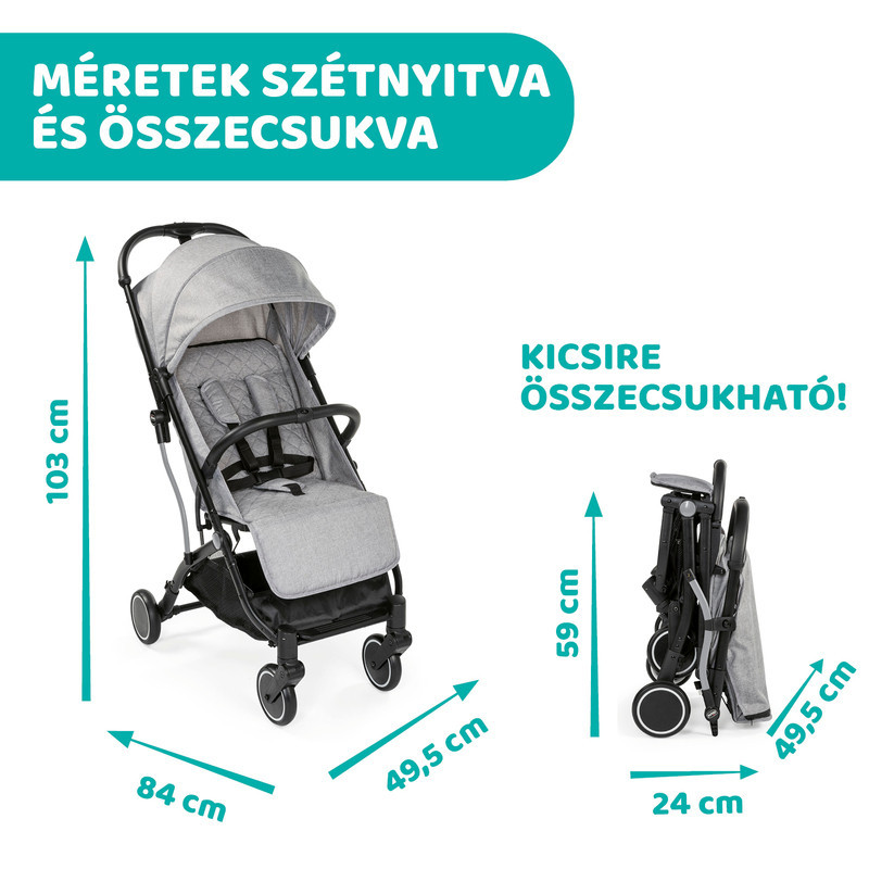 A Chicco TrolleyMe babakocsit már újszülött kortól használhatod. Egykezes összecsukásának és kihúzható fogantyújának köszönhetően, bárhova magaddal viheted, mint egy guruló bőröndöt.