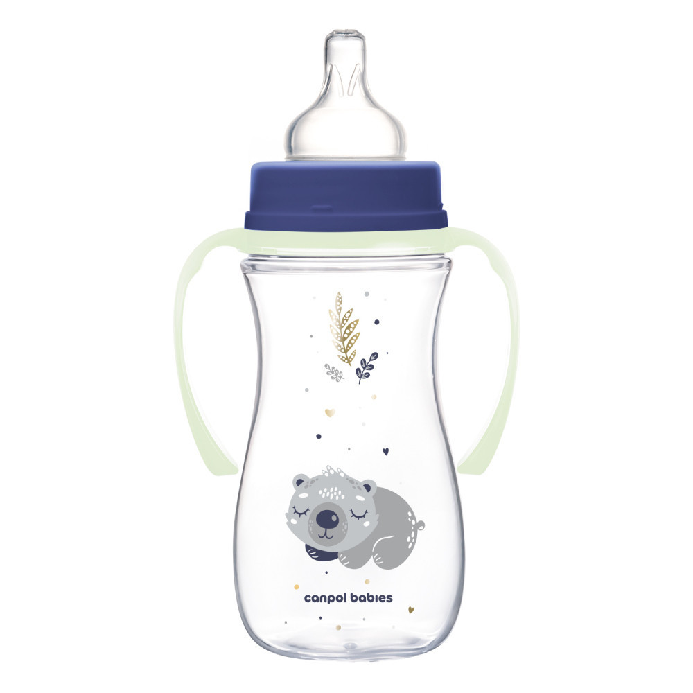 Canpol babies Anti-kólikás cumisüveg, világító fogantyúval, EasyStart, SLEEPY KOALA, 300 ml - kék