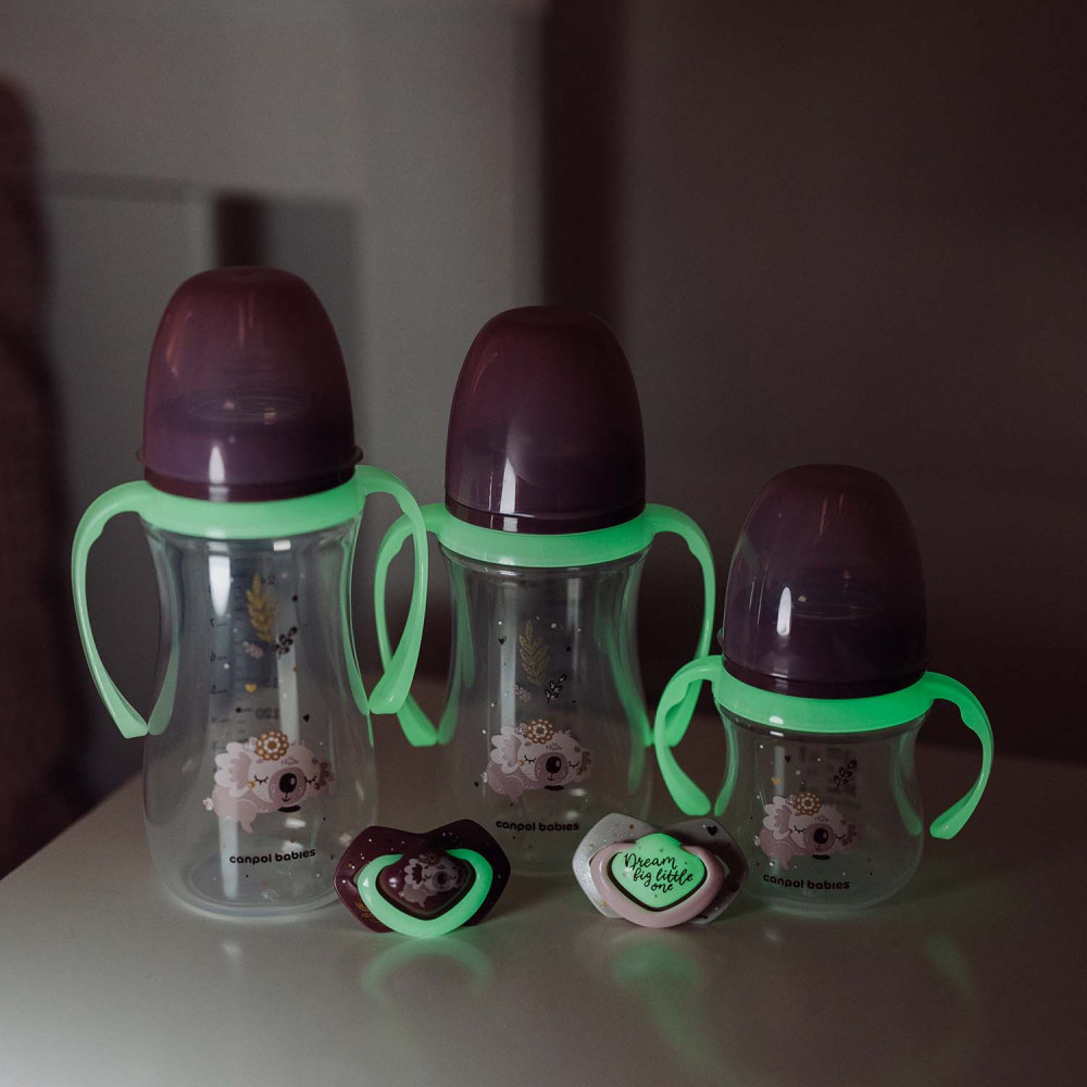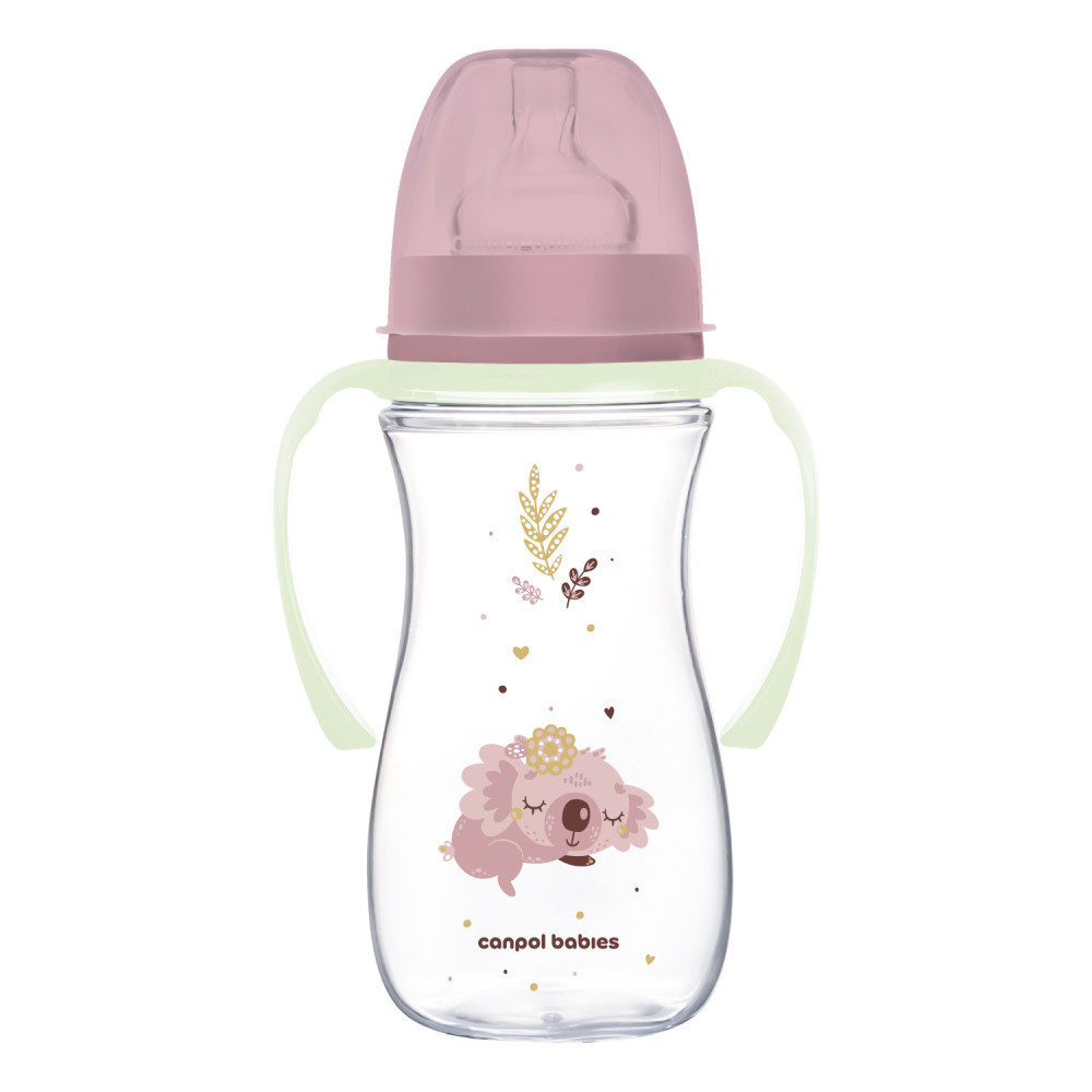 Canpol babies Anti-kólikás cumisüveg, világító fogantyúval, EasyStart, SLEEPY KOALA, 300 ml - pink