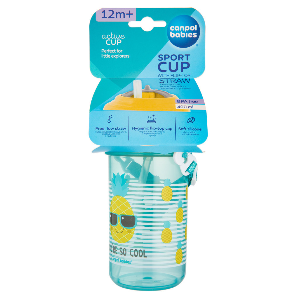 Canpol babies Sport itatópohár, flip-top, szilikon szívószállal, 400 ml, SO COOL, sárga