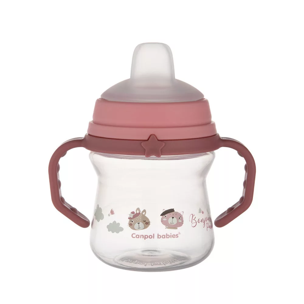 Canpol babies Itatópohár szilikonos ivócsőrrel, FirstCup, 150 ml, Bonjour Paris - rózsaszín