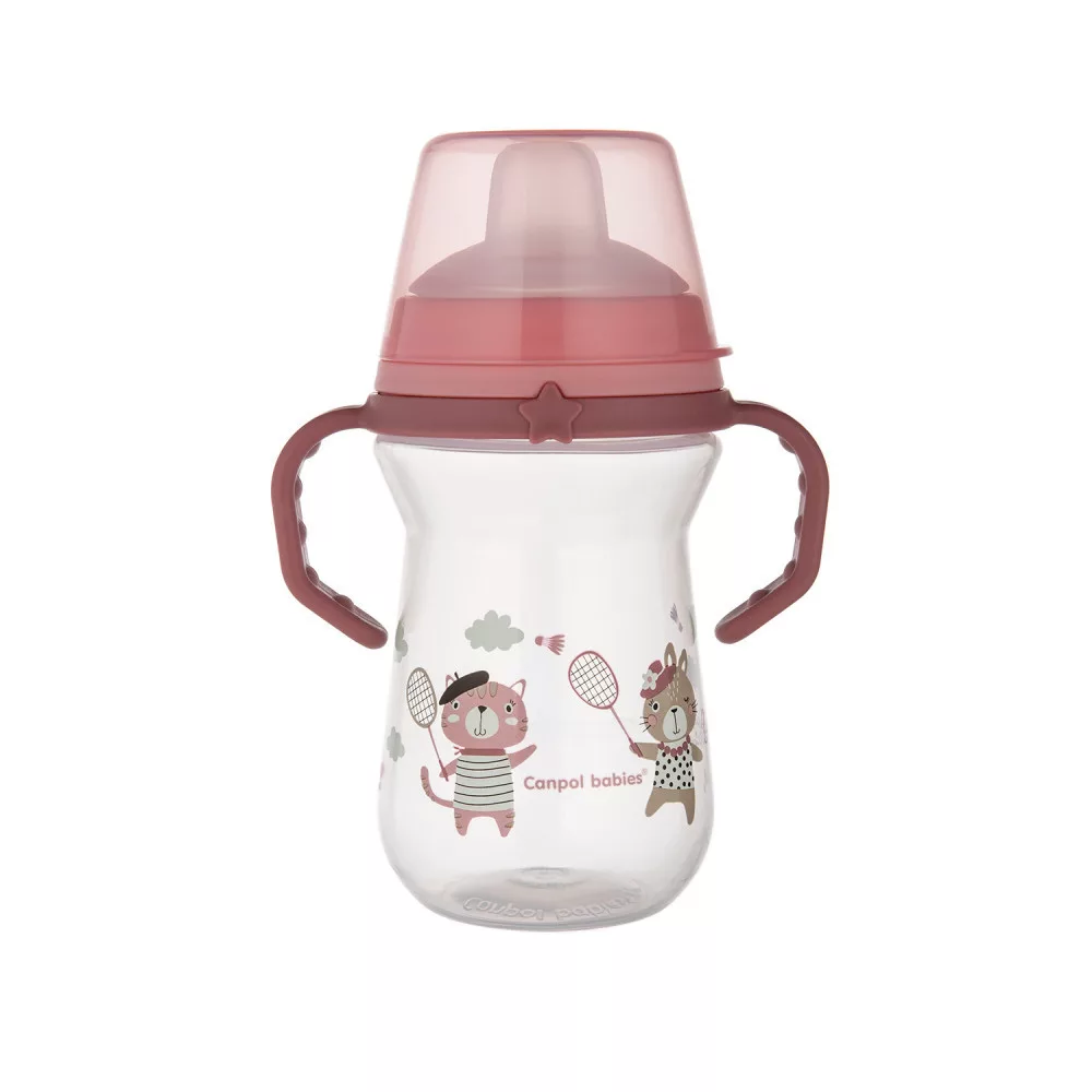 Canpol babies Itatópohár szilikonos ivócsőrrel, FirstCup, 250 ml, Bonjour Paris - rózsaszín