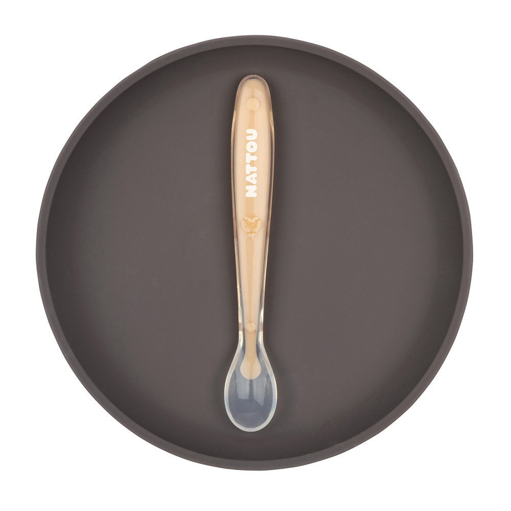 Ez a cuki Nattou szilikon étkészlet nemcsak szemet gyönyörködtető, de szuper praktikus is. A két részes szettben találsz egy lapostányért és egy hozzá passzoló kanalat, mely tökéletes páros a hozzátáplálás kezdetétől egészen a nagyobb falatokig.